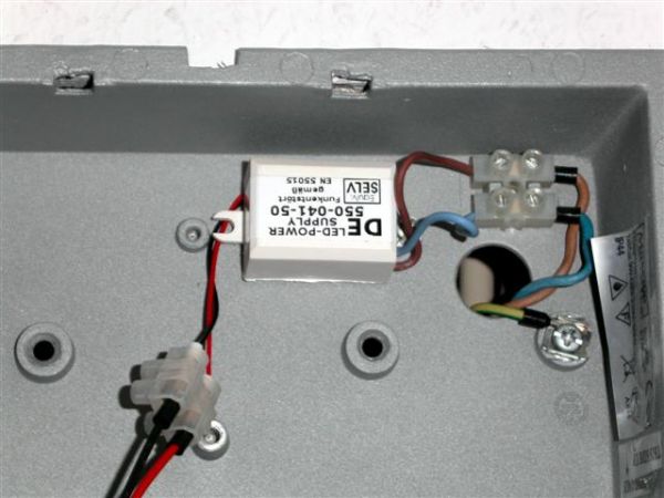 Das Vorschaltgerät und die Fassung sind nur mit jeweils zwei Schrauben befestigt. Nach dem Lösen der Schrauben kommt beides raus. Übrig bleibt das nackte Alugehäuse der Leuchte mit der Zuleitung 230V.