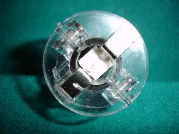 die original lampenhalterung wurde abgedremelt.. daran mit 2 komponentenkleber ein massiver alukühlkörker geklebt, dadrauf mit wärmeleitkleber die rebel, die auf einen str gelötet ist und dadrauf mit sekundenkleber die side emitting linse.. sieht gut aus..
