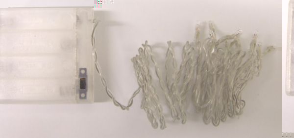 - ein Batteriegehäuse, wo man auch gleich die Flasche drauf stellen kann (ich habe bei Ikea mal zugeschlagen, als es da die kleinen Glänsa-Lichterketten für nur 0,50 € gab) bzw. kann man auch ein anderes Gehäuse nehmen und die LED mit einem Netzteil betreiben