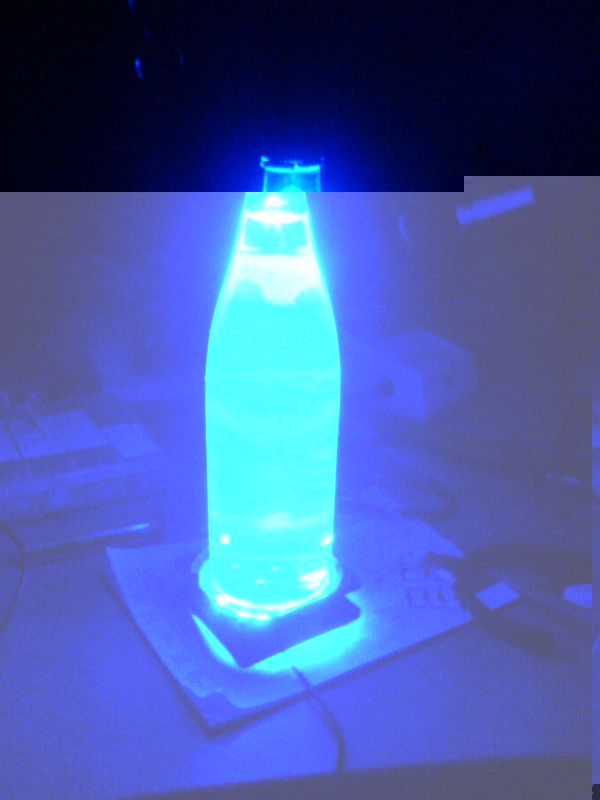 Wasserflasche auf dem Cluster, wie gesagt ohne Plexiglas als Streuung also mit Plexiglas viel besser