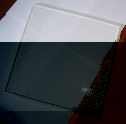 mal ein bissl Farbe, die Farben weichen doch etwas von den realen Farben ab, aber ich glaub im wesentlichen sind die recht aussagekräftig. Das ist jetzt nur die Plexiglasscheibe. Ich habe noch eine spiegelnde Rückfläche welche man auch noch einschieben kann.