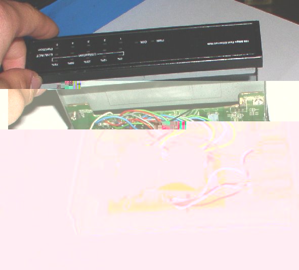 Also erst mal die alte Platine rausgeschmissen. Da ich die RJ45 Buchsen noch brauchte hab ich die Platine etwas zurecht gesägt, DMX Platine rein, alles verlötet, DMX Buchsen noch eingebaut und fertig war mein DMX2PWM Hub.