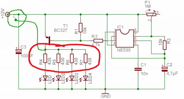 Ist die Schaltung nicht extra für 4 LEDs ausgelegt? Muss da mal schauen.