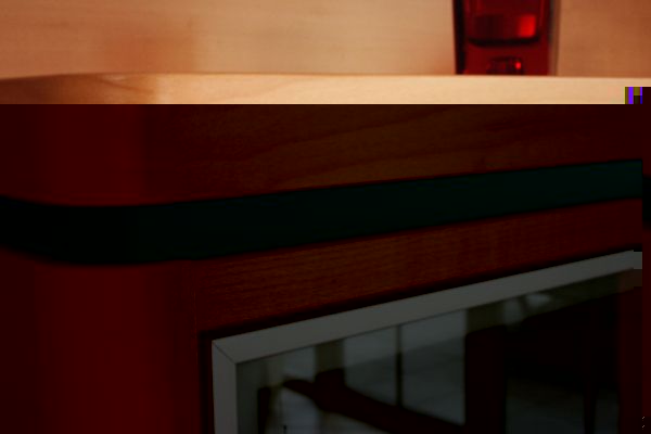 Auf dem ersten Bild sieht man eine Nahaufname, wo man die Grünglasscheibe sehen kann. Auf den ersten Blick, sieht es wie ein einfacher grüner Streifen aus, es ist aber grün-satiniertes Glas.
