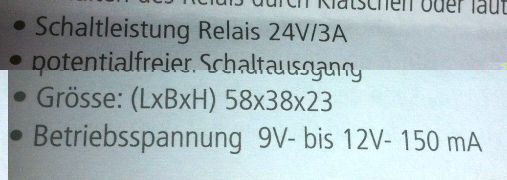 Ich würde auch ein 9V oder 12V Netzteil empfehlen. Schon der Ruhestrom des Klatschschalters dürfte > 10mA sein, wenn das Relais durchgeschaltet ist bestimmt schon um die 50mA. Also reicht eine Standard 9V Batterie (gute haben ~ 500mAh) auch wenn gar nichts angeschlossen wird im 'eingeschalteten' Zustand nicht mal einen Tag...