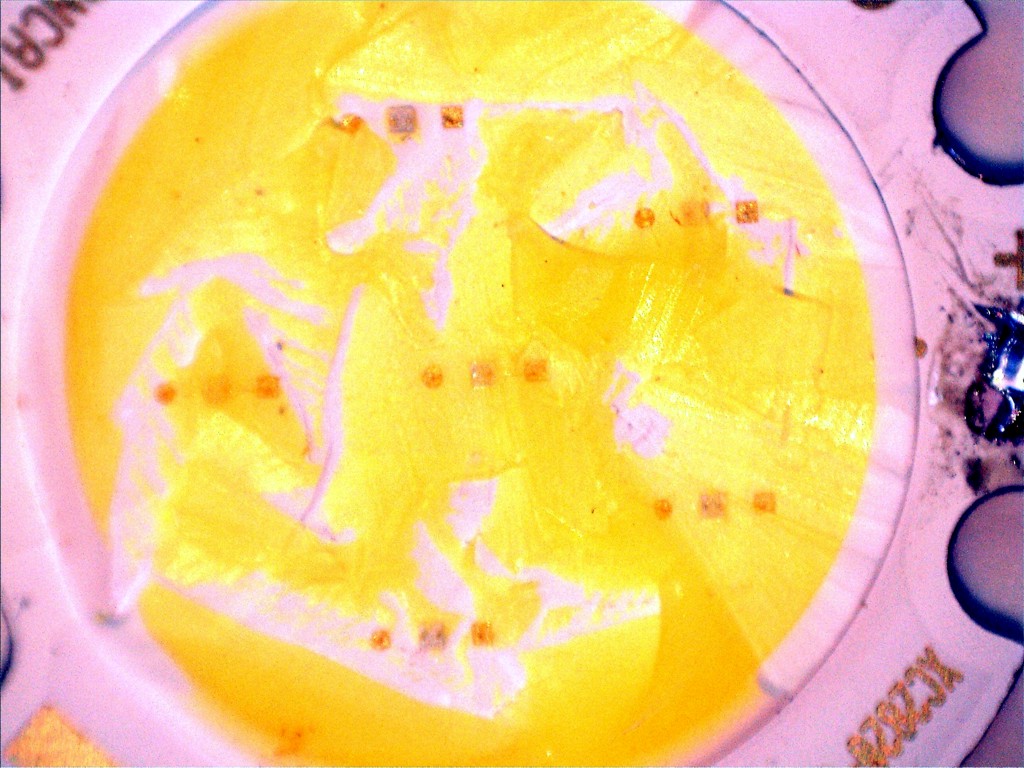 Dann habe ich die Phosphorschicht weitgehend entfernt. Das COB-Modul enthält tatsächlich nur 6 LEDs: