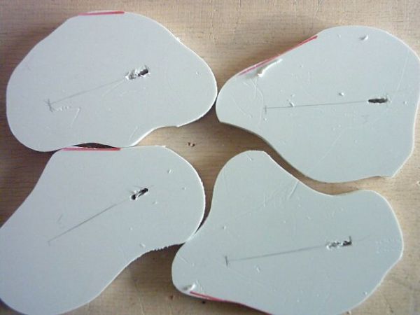 nun wird angezeichnet, wo das acryl in die halterung (obere hartschaum-scheibe) gesteckt wird. dann ein