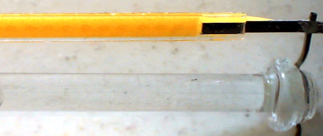 Der Kolben ist mit einer Art Keramikschaum (grobporiger und härter als PU) mit dem Sockel verklebt. Der Schaum läßt sich gut abdremeln. Im Prinzip könnte man an der Kolbenbasis auch ein paar axial strahlende weiße oder rote LEDs unterbringen und mit den Filamenten in Reihe schalten, allerdings können das nur wenige sein, und es stellt sich die Frage, wie man die an das Glas anbringt (Lichtaustritt an Glas mit dauerhaft vergilbungsfreiem Epoxy??) und wie man die Isolierung gestaltet.