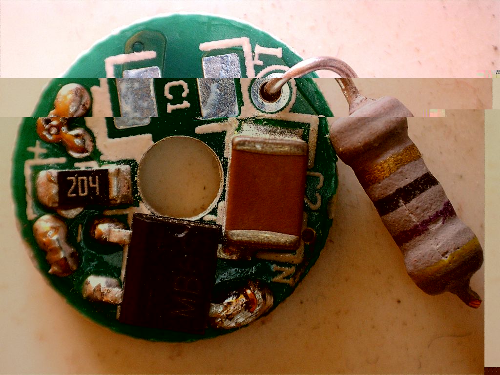 Hier noch ein Teardown einer E14-Kerze. Das Netzteil dort ist noch simpler als das meiner V-Tec, da sogar auf den Begrenzungswiderstand verzichtet wird.