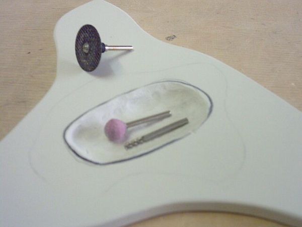 eine fertige mulde und meine bevorzugten werkzeuge für den dremel/proxxon.