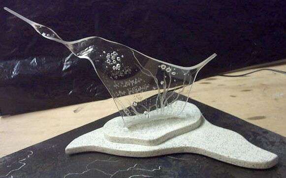 Bei den untersten Bildern hast du nen Loch in der Figur: Hast du das im Vorraus reingesägt, oder solange mit der Heißluftpistole draufgehalten, bis das Acryl verflossen ist?