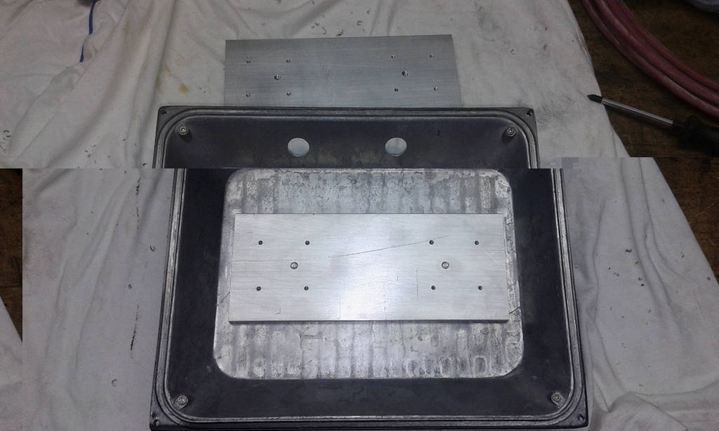 Natürlich sollte man vorm Einsetzen der Platte das Gehäuse/Gußoberfläche etwas glätten (Gewebeschwamm) und auf Halbwegs-Ebenheit prüfen. Haarlineal geht. Abschließend schauen, wie gut die Platte liegt und entsprechend nacharbeiten. Wärmeleitpaste versteht sich von selbst, davon braucht man relativ viel, hab ne 35gr. Tube. Liegt einfach am Gußschwund oder sonstigen Gußungenauigkeiten, aber zwischen den Rippen gibts ein Tal.