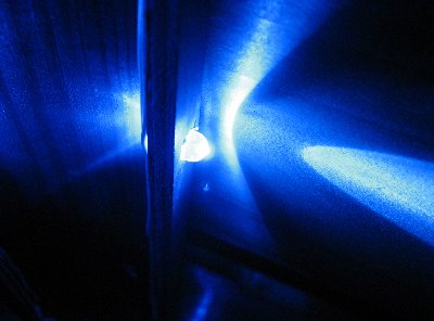 Anschließend wieder lackieren und 3x 5mm blaue 7000mcd Leds in Reihe mit 220 Ohm Widerstand.