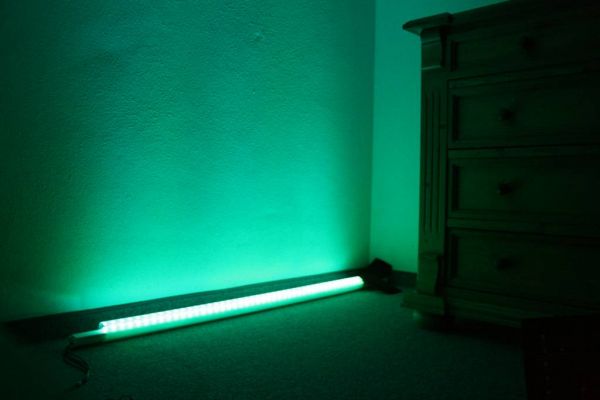 Wow! Also, da die Leds so ganz knapp aneinander gereiht sind, wird die beleuchtete Fläche (hier die Wand) komplett ohne Übergänge "gefärbt"!!