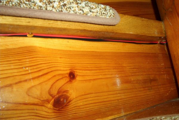 Damit man die Verkabelung nicht sihet, ist hier die extra angefertigte Holz-Abdeckung für die Stufe, die die Kabel versteckt angebracht worden.