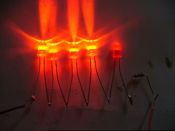 Du verbindest also nun 5 rote LED's(bzw. 3 blaue) jeweils Anode mit Kathode.