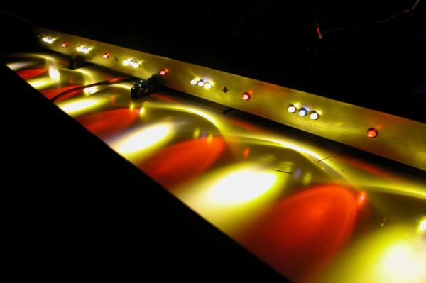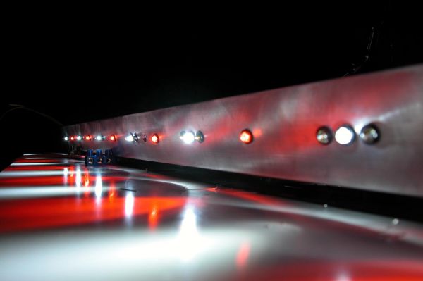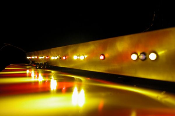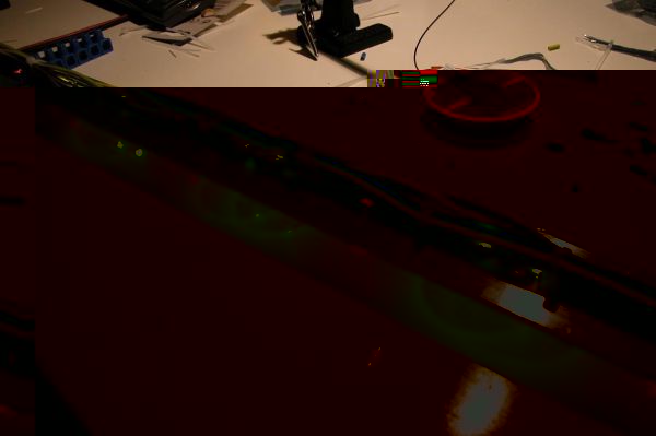 Des weiteren wurden schon mal aus Neugier 4 Leds in die Leisten eingesetzt. (Kabelgewirr mal bitte nicht beachten)