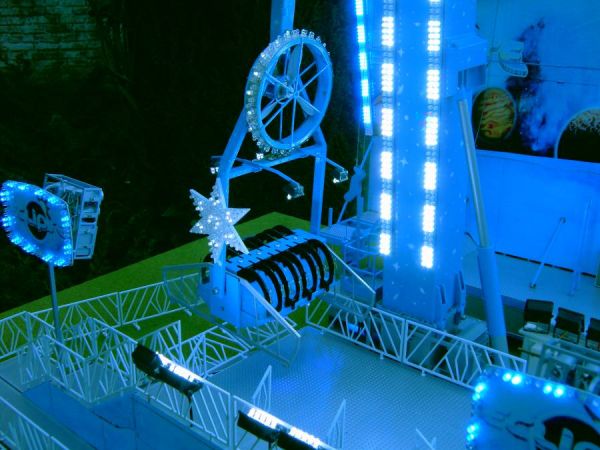 Ich würde ja ein Video mit meinem Fotoapparat machen wenn in einer Woche die Motorsteuerung fertig ist. Aber ich habe keine Ahnung wie das Video ins Forum gepostet wird. Schreibt mir mal ein paar Tips dann wird es schon klappen.Der Propeller ist auch am Originalgeschäft nur eine Atrappe. Er hat mit dem Antrieb nichts zu tun. Der Antrieb sitzt am Ende der Säule wo auch die Schleifringe für die Stromübertragung sitzen. Auf einem Bild kann man das sehen.Zur Zeit baue ich die Motorsteuerung und dann ist das Modell fertig. Das Modell ist sehr schwer weil am Ende des rotierenden Armes alles mit Blei als Kontergewicht gefüllt ist. Sonst würde sich der Arm niemals drehen. Am 6.7. in Düren ist das keine Modellbauausstellung. Dort im Stadtcenter habe ich dann meine komplette Kirmes aufgebaut. Die Ausstellung ist 21 Quatratmeter groß und wird über Schaltuhren gesteuert. Ich bin nur beim Auf und Abbau da.