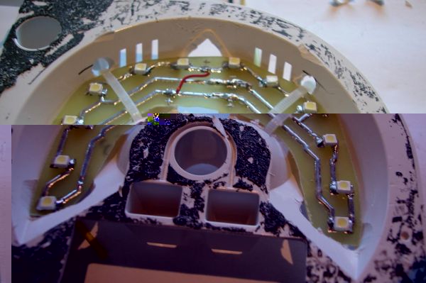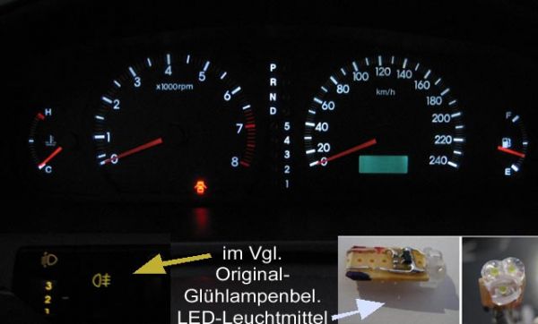 Wie man erkennen kann wurde die originale Beleuchtung durch 4 mini Glühöbster