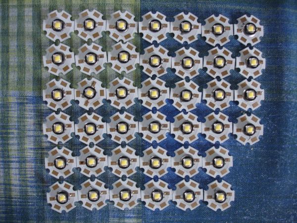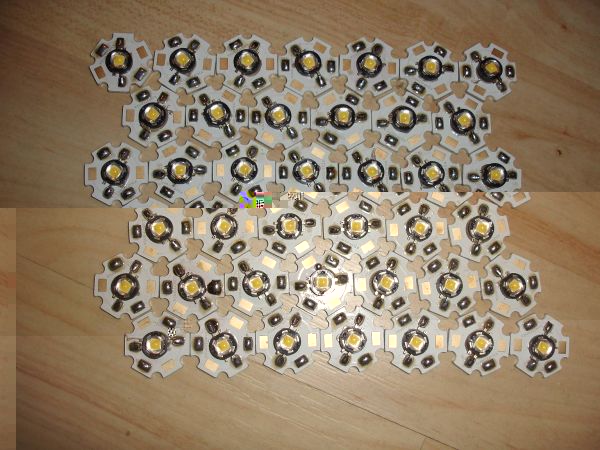 als erstes hab ich mir mal so überlegt, was ich so brauche.. P4's? ja.. unzwar nich zu wenige.. erstmal n paar zum test geholt.. gut so.. danach stand fest.. kaltweisses licht beim fernsehen.. nein danke! also warmweisse her.. hab dan mal flux 40 p4's in warmweiss geordert.. leider gibs die nich auf starplatinen hier im shop.. aber dazu später mehr.. hier erstmal n foto der leds.. damit ihr neidisch werdet.. :lol: