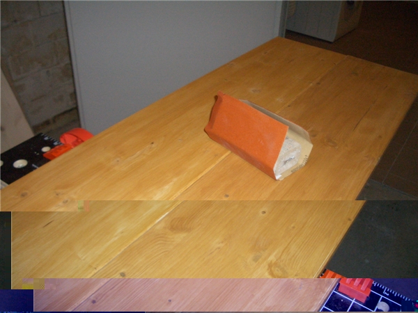 Weil bei mir durchs Zimmer der Kaminabzug aus dem Keller hoch zum Dach läuft, musste ich aus dem einen Brett einen Ausschnitt sägen, wodurch das dieses Brett von mir breiter gewählt wurde, damit an dieser Stelle das Brett nicht zu schmal wird