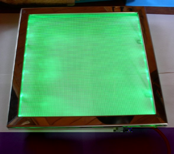 RGB Superflux bestellt, einen Rahmen aus Holz gebaut, LED's aller verlötet und getestet. Doch das Ergebnis war allerdings alles andere als zufriedenstellend. Ich hatte geplant eine Din A4 große Fläche mit den Superflux auszuleuchten in einem Abstand von etwa 6cm, aber die Ausleuchtung war nicht schön gleichmäßig geworden. Bei einem Abstand von etwas über 10cm sah das ganze schon wieder besser aus, allerdings wäre mir die Konstruktion dann einfach zu tief geworden. Also hab ich diese Idee erst mal wieder verworfen.