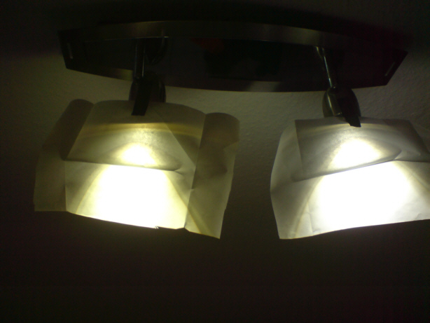 Vergleich beider Spots mit Hilfe von Butterbrotpapier: