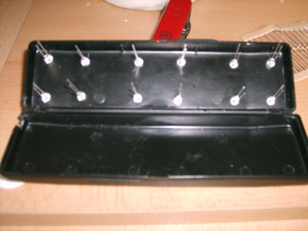 ich hab 5x5mm leds in eine alte filmdose (hab ich gehälftet) gemacht und die dann mit silikon abgedichtet. (Das ist nur so klein weils mein dad nicht größer wollte)