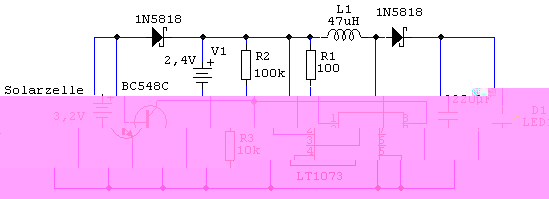 Zu deiner Frage kann ich folgendes berichten. Seit Januar habe ich vier Solarlampen mit nachfolgender Schaltung im "Freilandtest". Die verwendeten weißen LEDs (Nichia; 18000mcd; 20mA) leuchten die ganze Nacht. Selbst wenn mal mehrere Tage nur Wolken am Himmel hängen :wink: