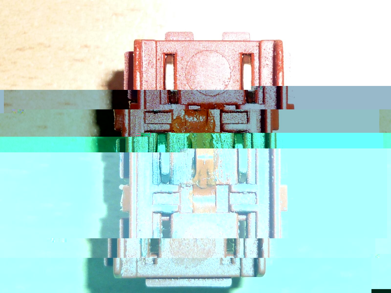 Es ist da auch wirklich nur das Gehäuse betroffen, die Kontakte sind völlig sauber.