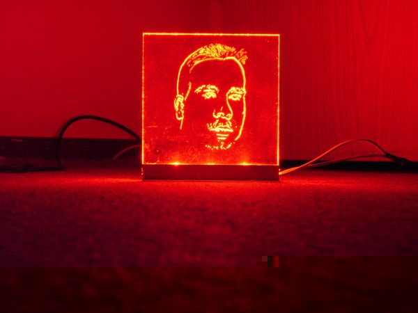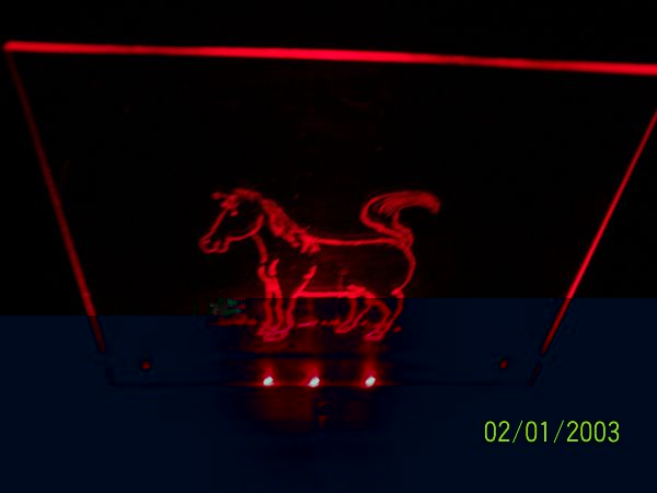 Bei einer Gravur ist es ratsam, je nach Leuchtstärke der LED einen genügend weiten Abstand vom Rand zu halten, damit die Optik nicht durch die Lichtkegel gestört wird.