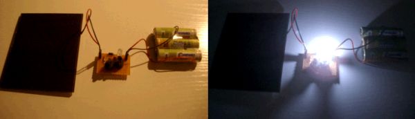 habe nun nochmal vieles probiert und das ist dabei herausgekommen. Ein Testaufbau mit einer hyperhellen weißen LED (16000mcd 20° 5mm) ist heller als alle Solarlampen, die ich bisher gesehen habe.