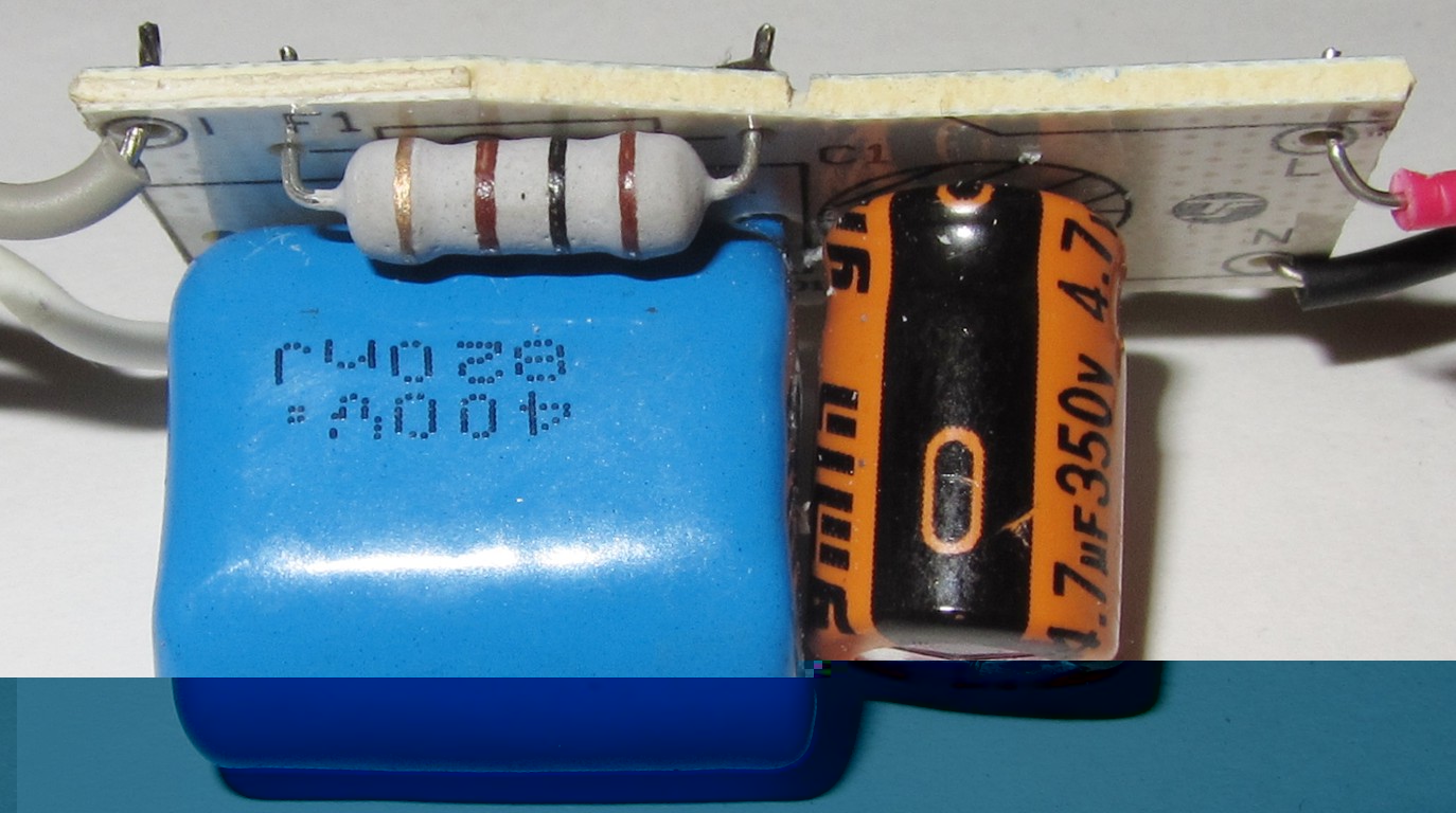 Um an das Netzteil zu kommen, musste ich den hinteren Teil des Gehäuses aufsägen. Hier dann die nächste Überraschung: zum Vorschein kommt ein Kondensatornetzteil.
