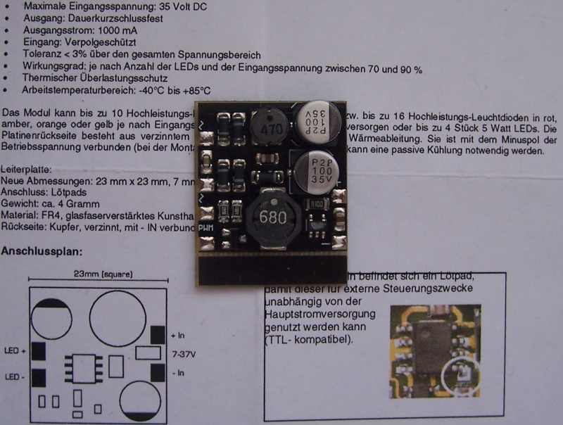 Hab mir neulich die 1000ma Ksq aus dem Shop gekauft und wollte sie durch einen zusätzlichen Poti, mit dem ich einen der Wiederstände auf der Platine erhöhe dimmen, das habe ich bereits mit der 1400ma Ksq aus dem Shop gemacht, hat super funktioniert. Dabei habe ich mich damals an diesem Beitrag orientiert viewtopic.php?f=35&t=6724&start=25