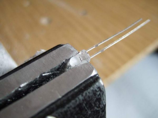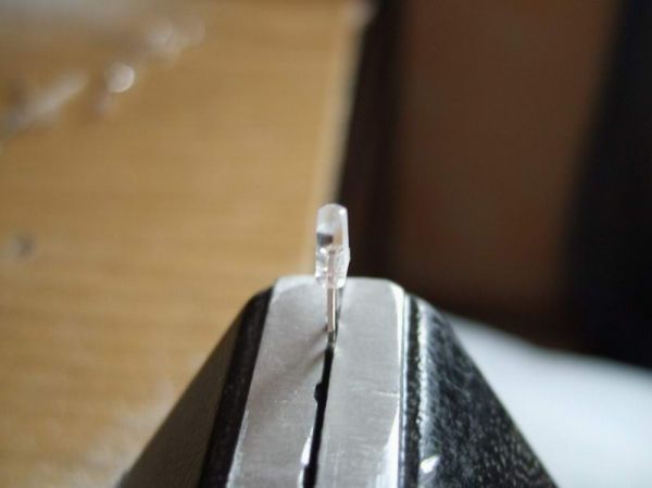 Nun als nächstes habe ich alle 60 LEDs von 3mm auf 2mm heruntergefeilt. Hier sollte man sehr Vorsichtig sein, um nicht den Halbleiterträger zu beschädigen.