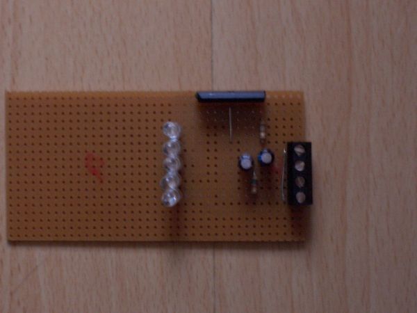 Also das kleine hab ich fertig, allerdings leuchten die ersten 3 LED's ständig und nur die letzten 2 blinken je nach Lautstärke! Auch wenn kein Signal da ist gehen die ersten 3 net aus!