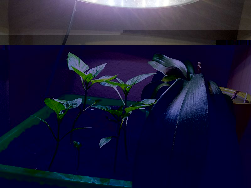 Ich habe versucht, mich etwas zu belesen. Und dabei ist mir aufgefallen, dass Pflanzen das weiße Licht der LEDs nicht optimal verarbeiten können.