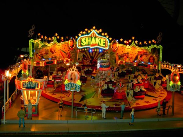 Ein besonders schön beleuchtetes Modell ist das SHACE & Roll. Am Modell brennen 4960 LEDs und 145 Spots. Der Kraftstrom beträgt 6 x 6 Volt -6 x 6,3 Ampere. Die LEDs brennen seit Jahren und es ist noch keine kaputt gegangen.