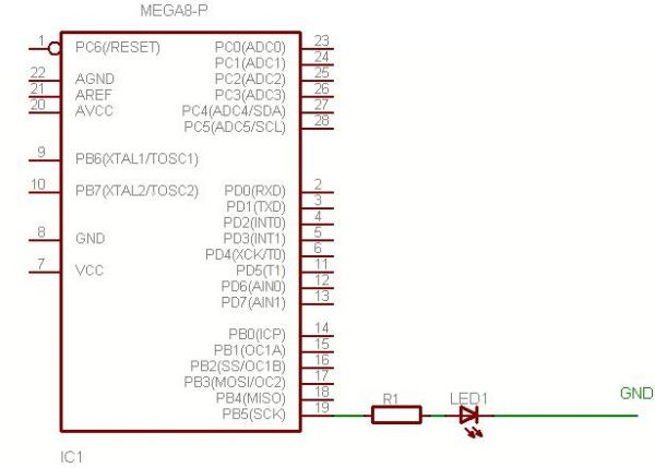 okee hab jetzt schon mehr verstanden.... aber wen nich jetzt einen port als Output einstelle und dan diesen auf High setze.... muss ich dann von der LED den masse pin oder den + pin am ic anschließen???