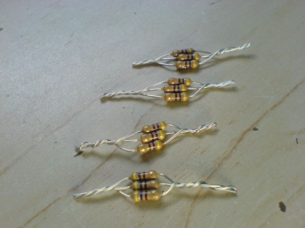 Dann die Widerstände fertig gemacht so in etwa 470hm und dann 3 Stück Paralell :