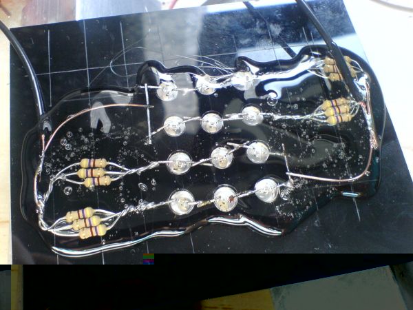 Dann habe ich die Köpfe der Leds abgeschliffen damit der 20grad Lichtkegel verschwindet..