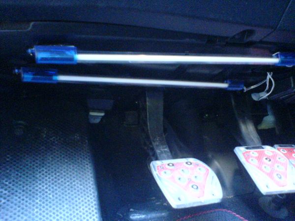 50 x 3mm blaue leds im linken fußraum und im kabelkanal.