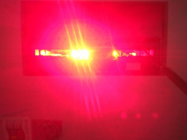 Dann einfach die Led's nach den Bohren hinein gesteckt, und mit einander verlötet. Da ich 5 Rote Led's verwendet habe, konnte ich gleich 5 stück auch in Reihe an 12V schalten, dazu habe ich nur einen 150 Ohm Widerstand benötigt.