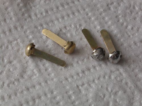Aus „Mustertaschenklammern“ habe ich mir Kontakte gebaut. Mustertaschen klammern sehen so aus: Links im Bild noch im Originalzustand rechts mit verzinntem Kopf.