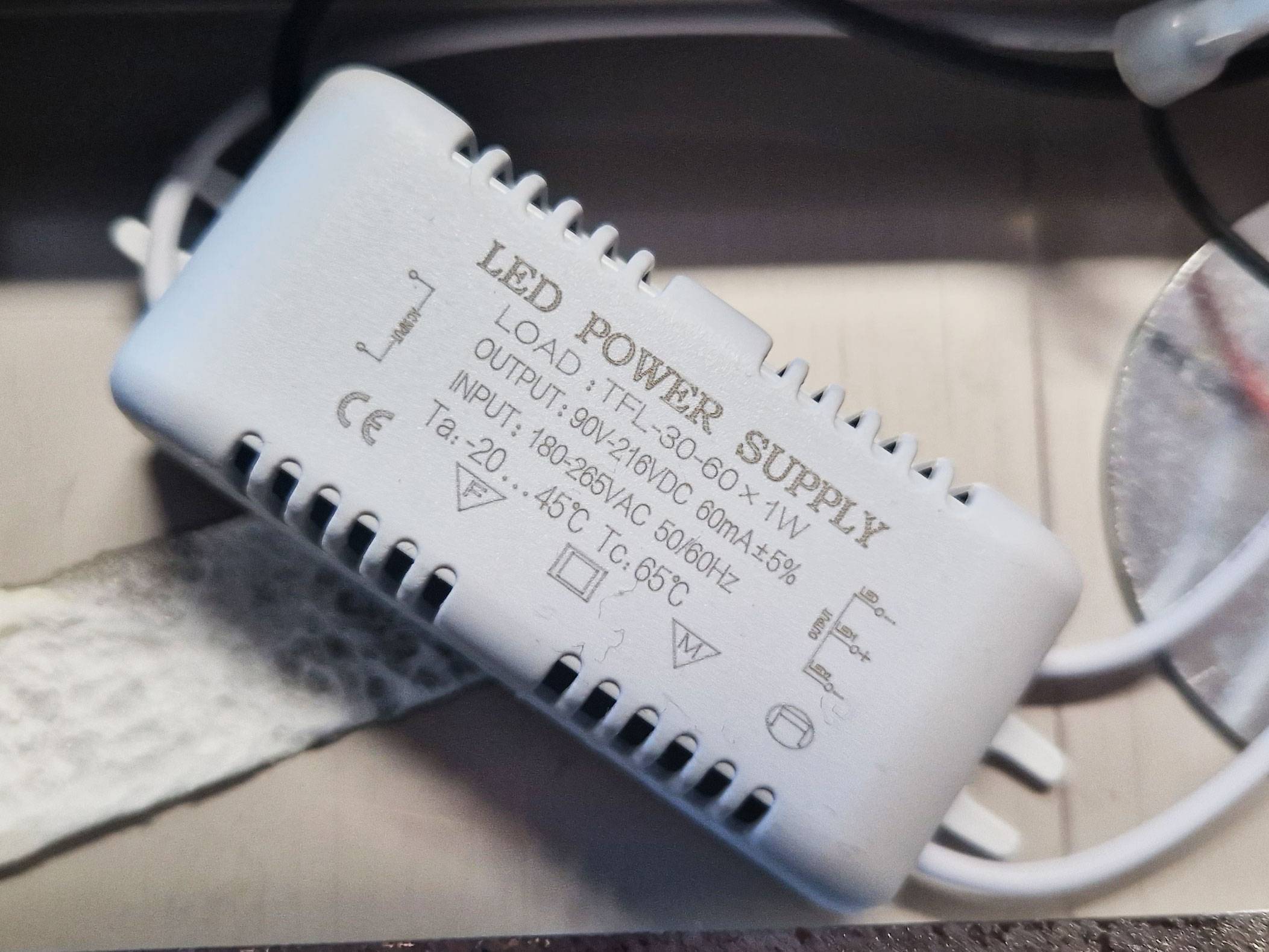 meine Frau hat ein Weihnachtsdeko-Objekt gekauft, in dem ca. 110 in Reihe geschaltete kaltweiße LEDs verbaut sind. Leider ist das Teil viel zu hell. Das Objekt wird direkt an 230V angeschlossen und enthält eine Konstantstromquelle mit einem Output von 90-216V DC, 60mA. Fotos der Platine und Bauteile siehe Anhang.