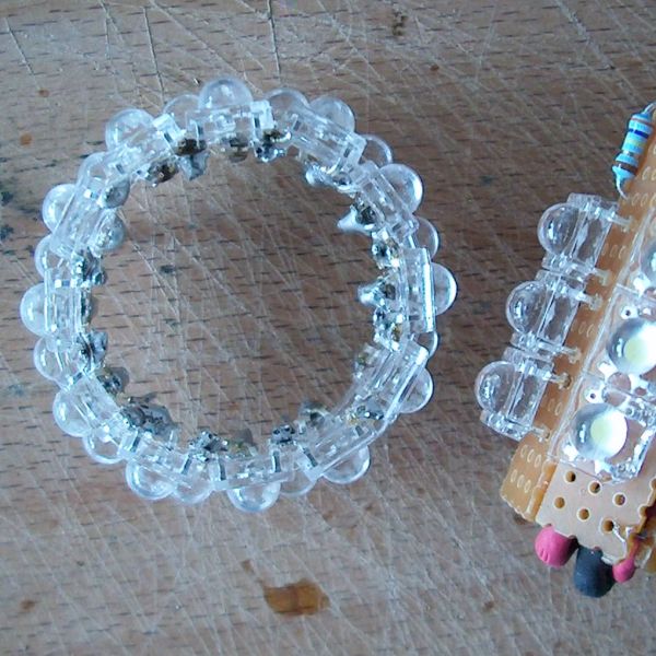 Hier jetzt der Aufbau der Ringe, wobei noch ein weiterer Vorteil der Superflux zu sehen ist: sie lassen sich aufgrund der 4 Beinchen auch ohne tragende Platine leicht und fest verbinden!