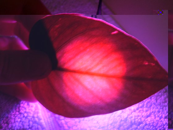 0,5mm Blatt durchleuchet mit 460&amp;amp;625nm.<br /><br />Cluster weit vom Blatt<br /><br />Blau wird vollständig absorbiert