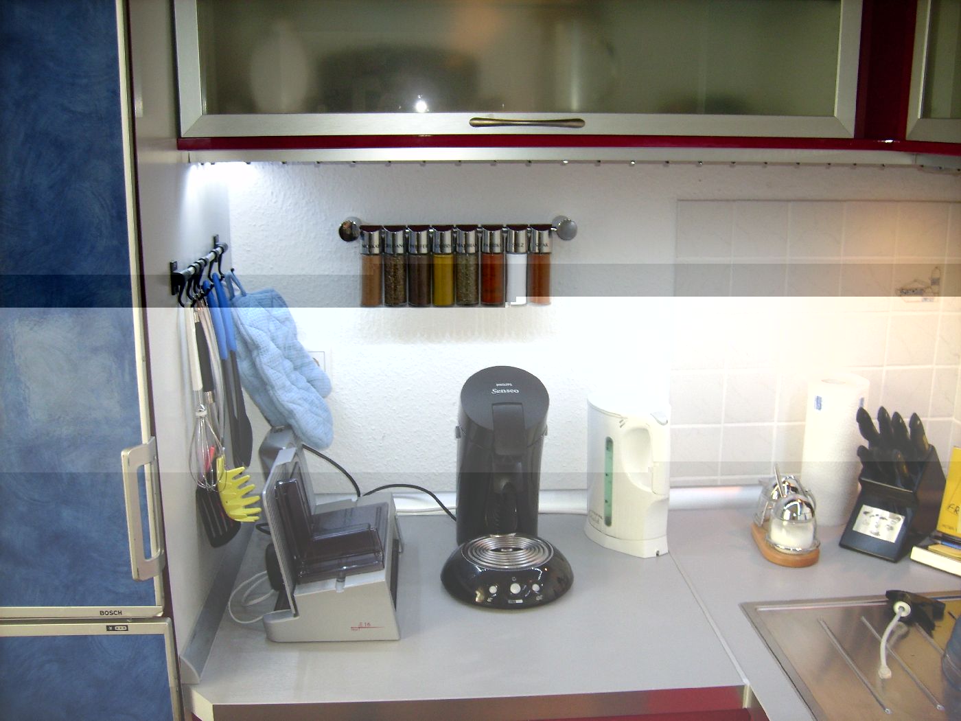 Das Doppelseitige Klebeband das auf den Bildern zu sehen ist, habe ich verwendet um die Kabel der Hängeschränkchen beleuchtung zu befestigen.