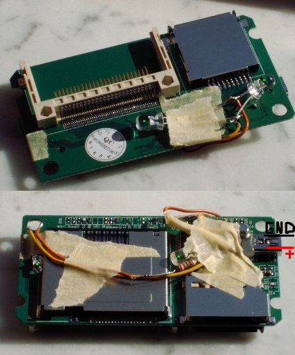 Soweit erstmals das Kartenlesegerät zerlegt...da kommen 3x 5mm und 1x 3mm 15000mcd grünen Leds rein.