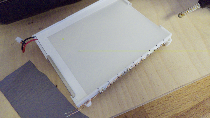 Unter dem Display, welches in einer weissen Kunststoffwanne liegt, befinden sich 3 Streufolien und darunter eine Plexifläche die das Licht wohl gleichmässig verteilt. Am unteren und am rechten Rand sind eine Reihe von LEDs angebracht.